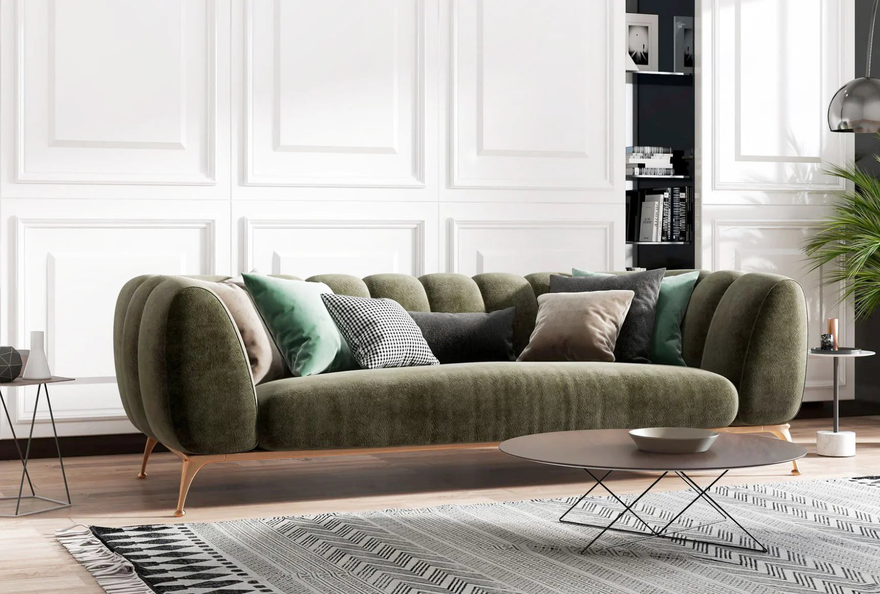 Canapé Relax moderne 3 Places en Velours Côtelé – Design Sculptural et Texture Élégante