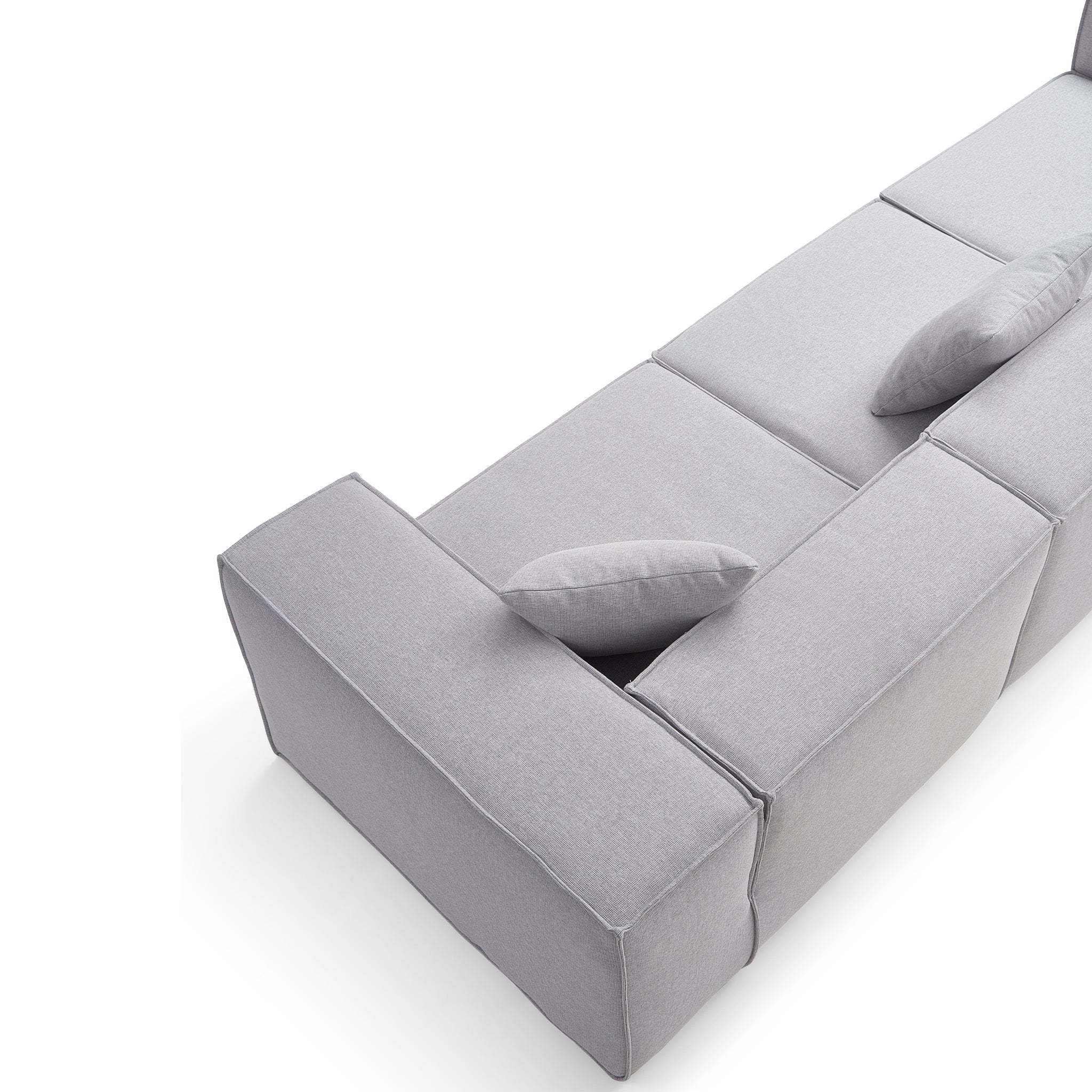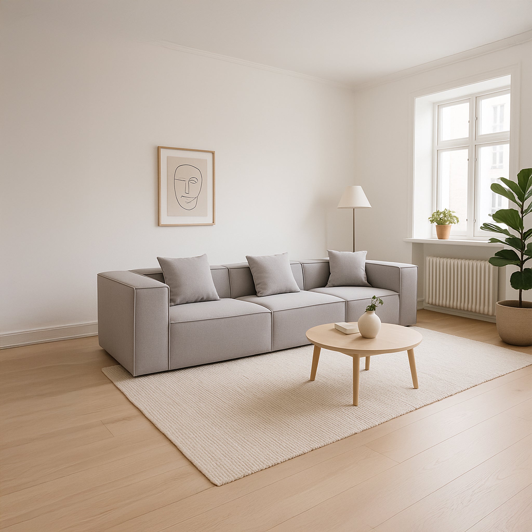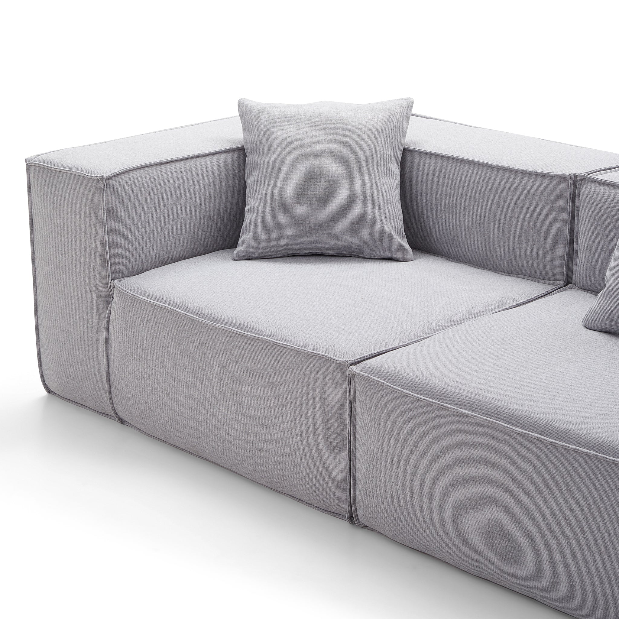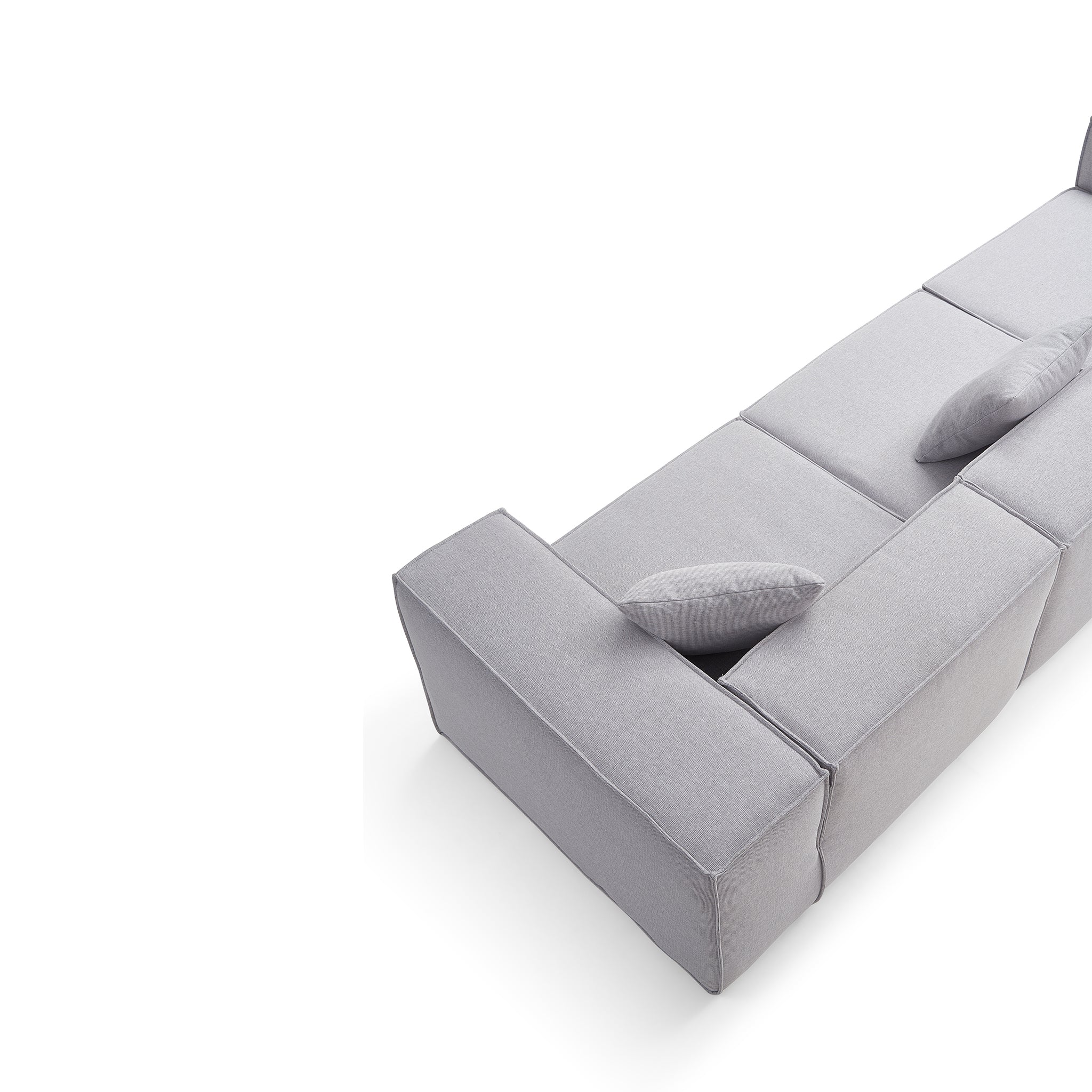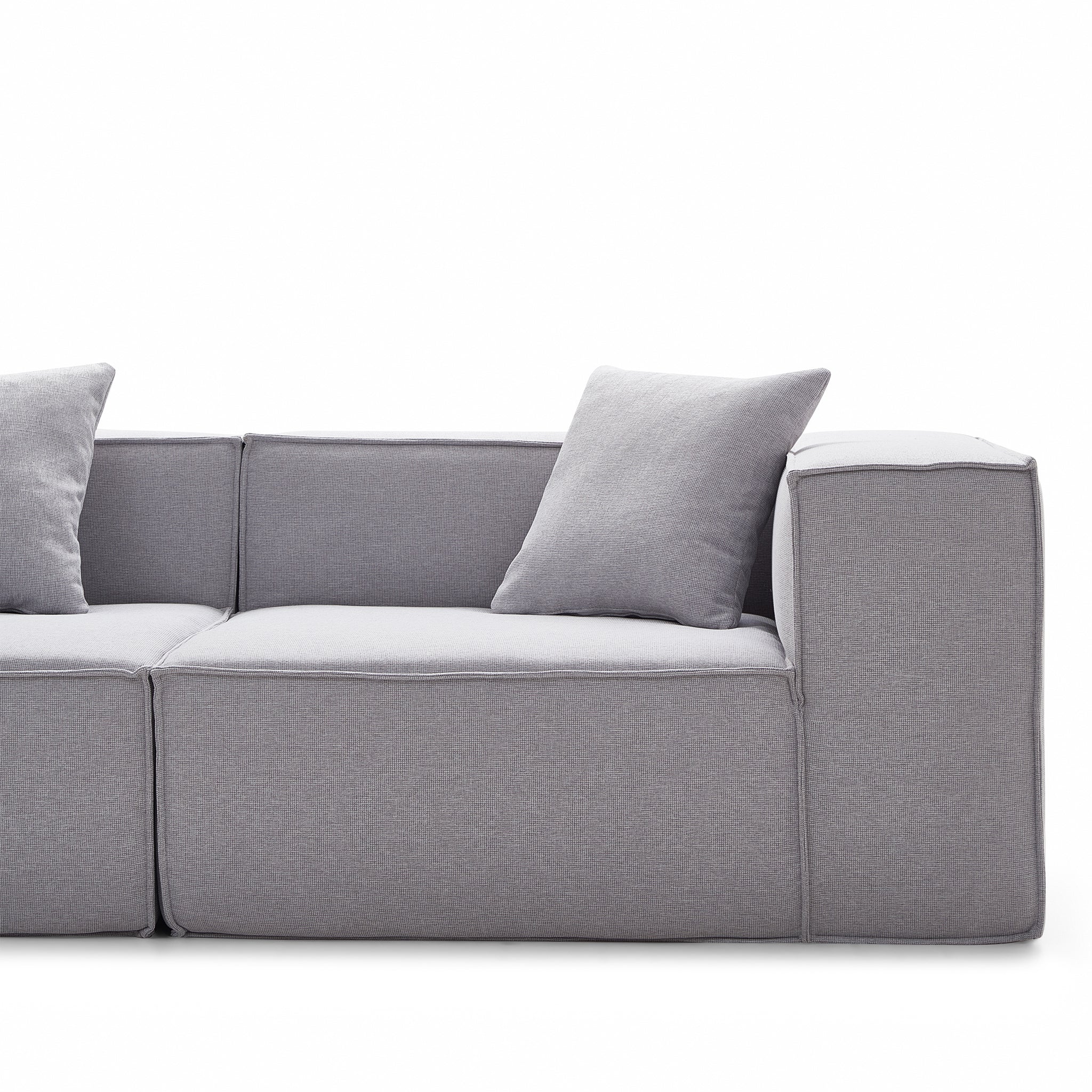 Minimalisme géométrique. Confort sur-mesure. Ce canapé 3 places en tissu gris clair incarne la pureté d’un design cubique contemporain allié à une technologie d’assise compressible unique.