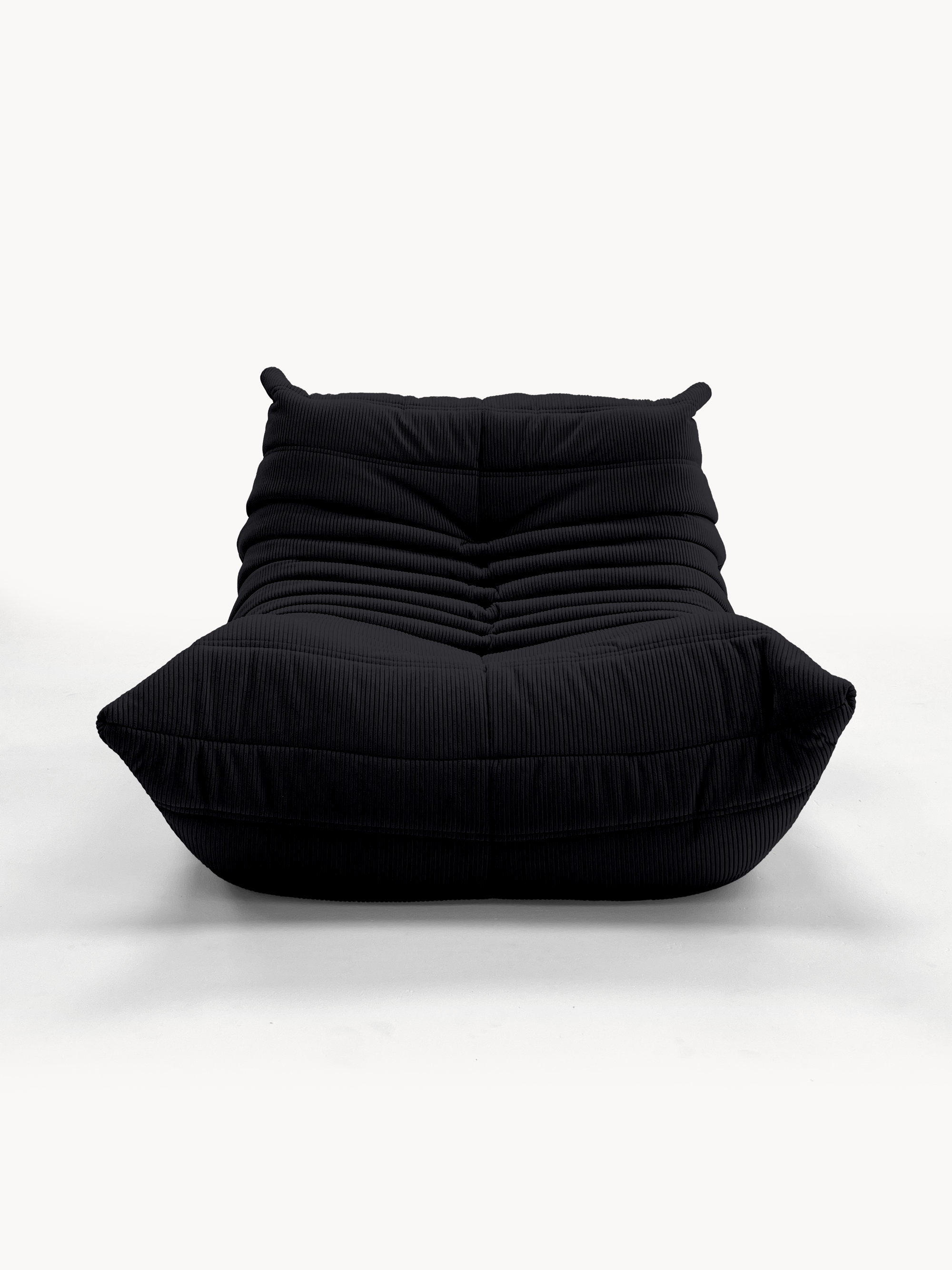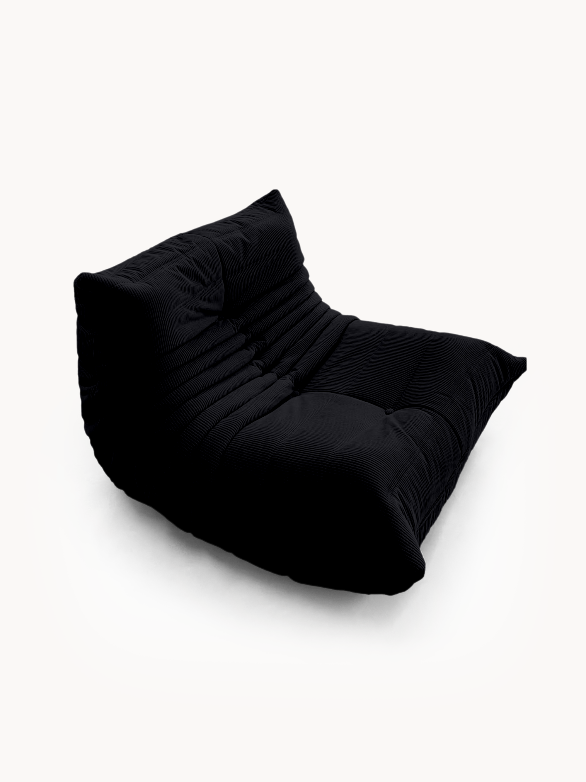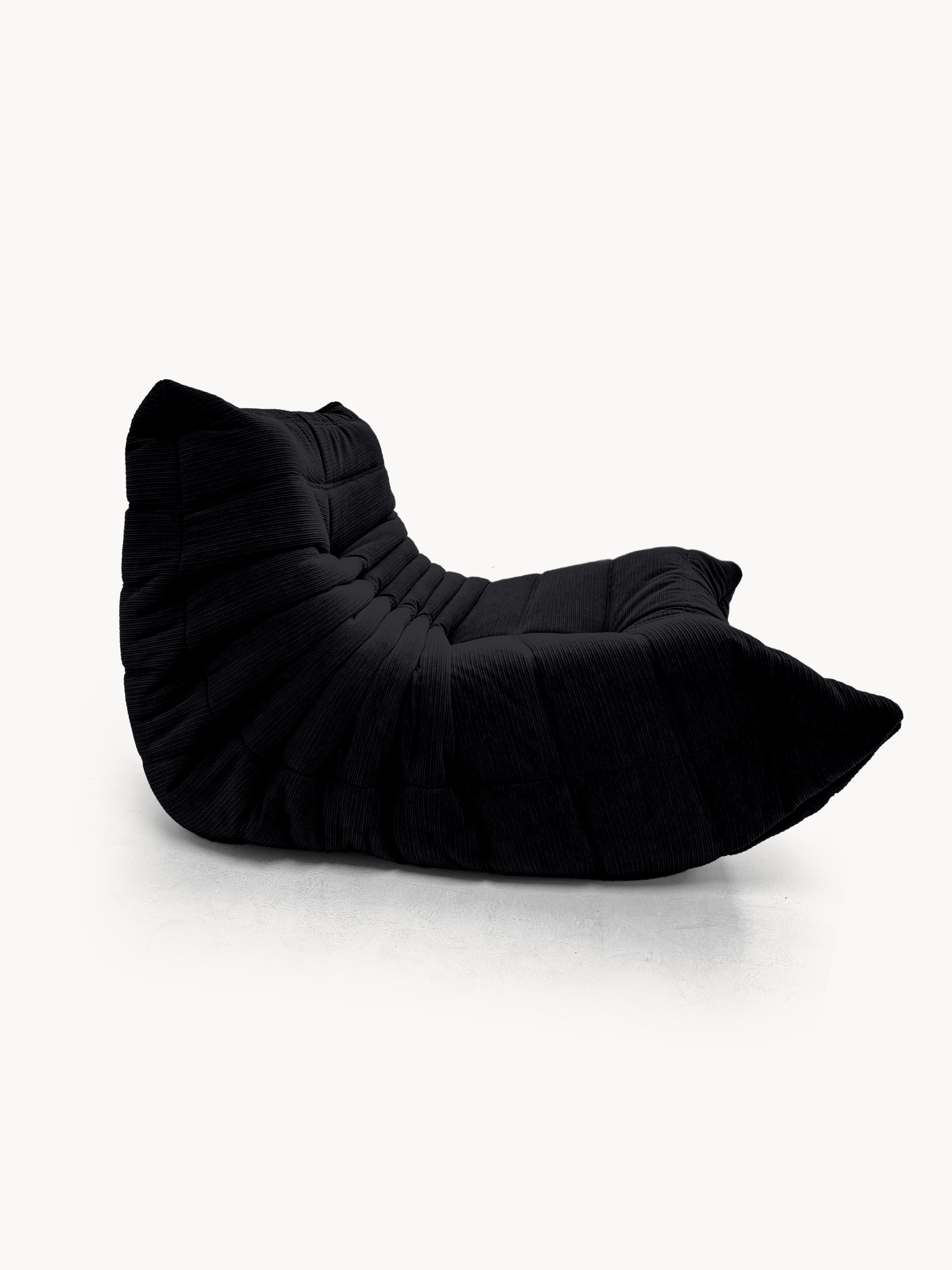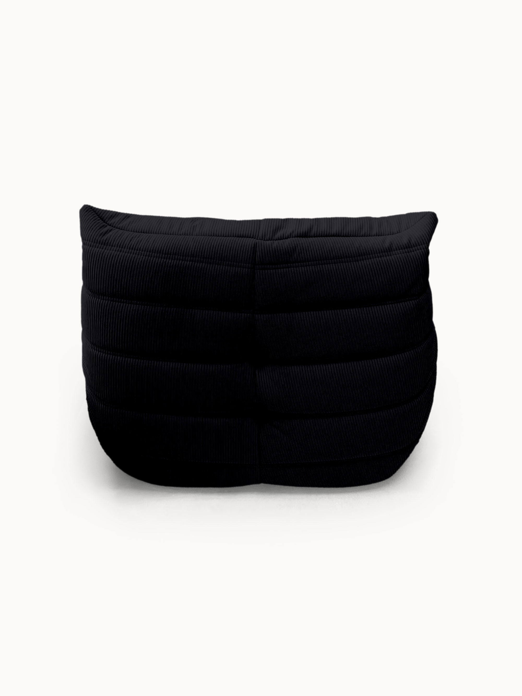 Sa silhouette basse et généreusement rembourrée épouse naturellement les formes du corps, offrant un confort profond et un maintien durable. Le velours côtelé, doux au toucher et visuellement texturé, accentue la richesse des lignes et confère à chaque nuance un éclat subtil et sophistiqué.
