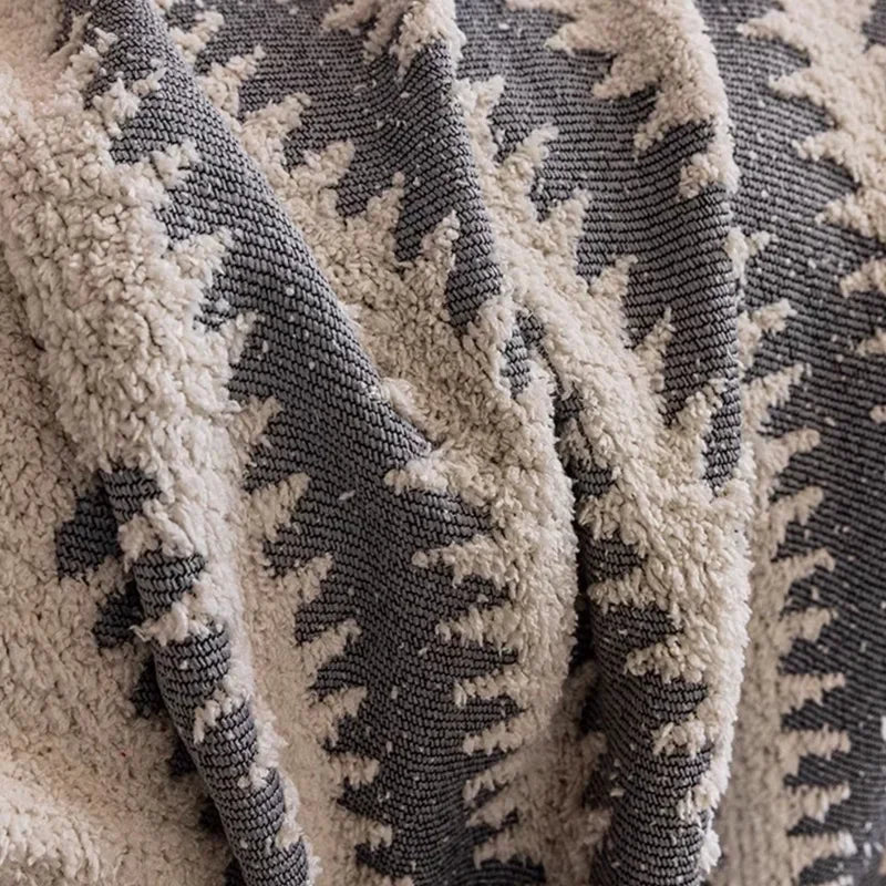 Ce plaid est fabriqué en tissu doux et résistant, avec des finitions tissées pour un rendu à la fois naturel et structuré.